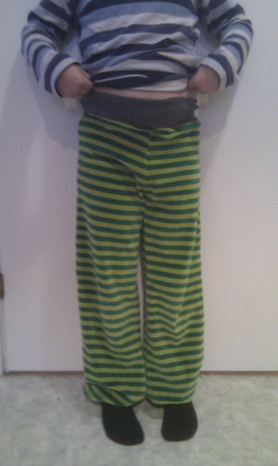 Jep, tänään sain vihdoinkin päätökseen viimevuonna aloittamani housut. Olin reipas ja ompelin ne loppuun. Kankaan poika valitsi itse jostakin nettiputiikista ja muutoin ompelin sen sitten muokaten Ottobren kaavaa poikien housuista :-) Kaava oli kiva ja resorit pistin vyötärölle ja lahkeensuihin. Ovat sitten miellyttävät pitää ja leikkiä eikä mikään kuminauha tai vetoketju/ nappi paina touhutessa. Liitän kuvan vielä tähän. Housut ovat ommeltu velourkankaasta ja ovat kokoa 134cm <3 Kuopus tykkää niistä todella paljon :)